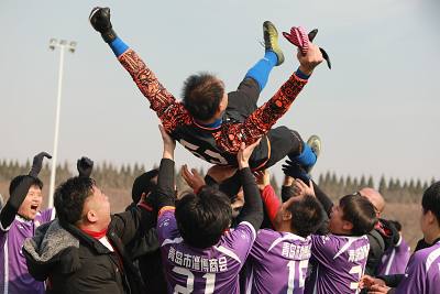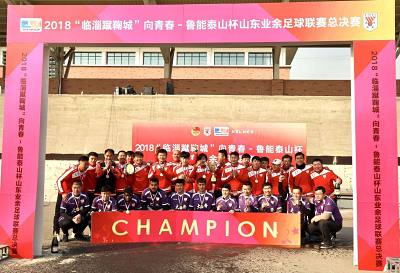 2019年1月6日上午9时50分,代表山东省业余足球最高水平的“鲁能泰山杯”总决赛决赛在淄博市临淄区的蹴鞠小镇足球场举行。青岛大齐足球队身披“青岛市淄博商会”战袍,在90分钟比赛中以0:0战平,最后通过扣人心弦的点球大战,以4:3战胜临沂红箭队获得山东省总冠军,从而在家乡创造了历史最好成绩,为家人、为淄博这座世界足球起源地齐国古都送上了一份沉甸甸的礼物。此时此刻,场上场下沸腾了。球员们振臂高呼,热泪盈眶;助威团冲入场内,热烈拥抱球员们,并将连续扑出两粒点球的门将杨军抛向了空中……