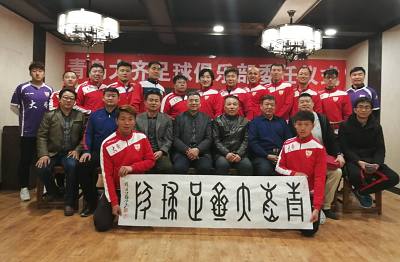 2019年1月13日,商会为了表彰大齐足球队取得的优异成绩,特邀大齐足球俱乐部董事长黄鹏、总经理胡晓磊、教练孙新波列席第三届理事工作会议。张广俊会长、翟善金名誉会长更是分别在工作小结和晚宴祝酒辞中表扬了大齐足球队。黄鹏董事长和胡晓磊总经理则向商会赠送了从家乡带回的蹴鞠表示感谢。1月14日晚上,商会还专门在崂山广开大酒店为载誉而归的大齐将士举行庆功宴。席间,张广俊会长高度赞扬了大齐足球队的拼博精神,翟善金名誉会长高声朗读了商会的贺电,黄鹏董事长则一一介绍了队员们的特点和贡献。耿佃富秘书长、梁树义常务副会长、国斯坤常务副秘长等出席作陪。大家共同度过了一个欢庆胜利的夜晚。